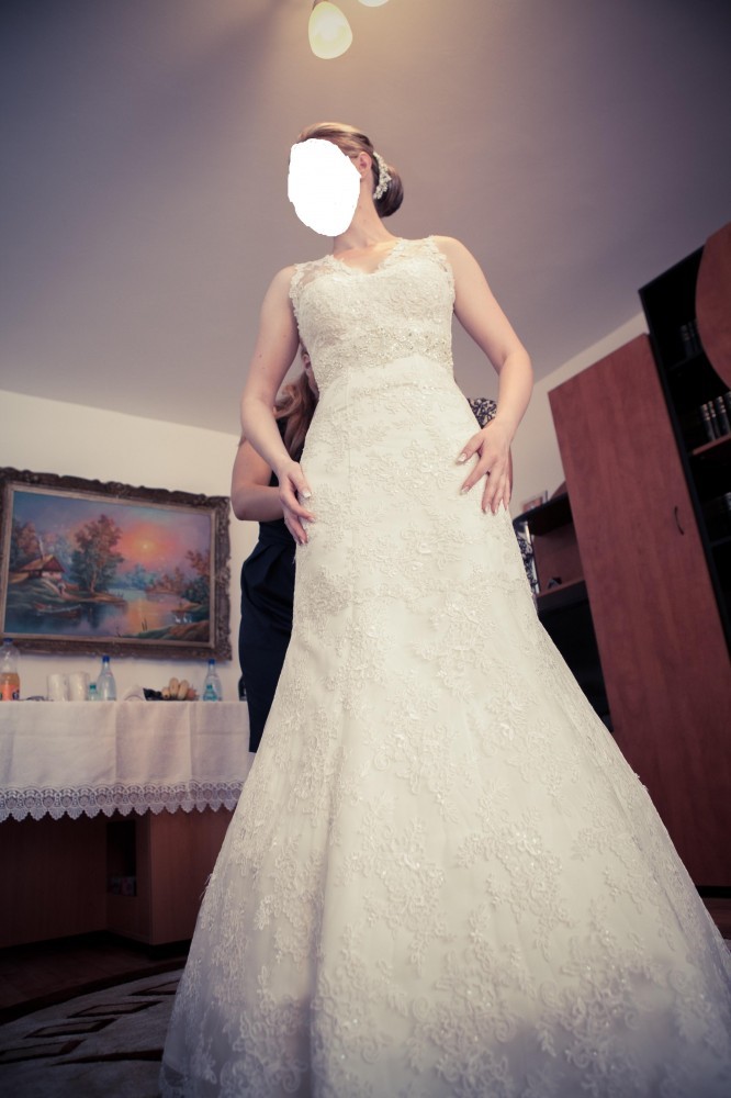 ROCHIE DE MIREASA DIN DANTELA, CU BRETELE DIN DANTELA, SPATELE DIN DANTELA USOR DECUPAT,