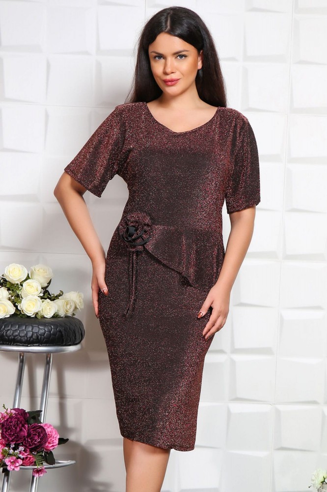 Rochie de ocazie conceputa din lurex, accesoriu floral.