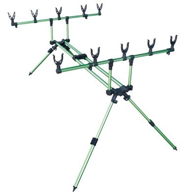 - rodpod din aluminiu, foarte stabil, multidirecțional, pentru 5 lansete crap