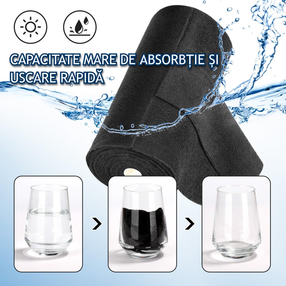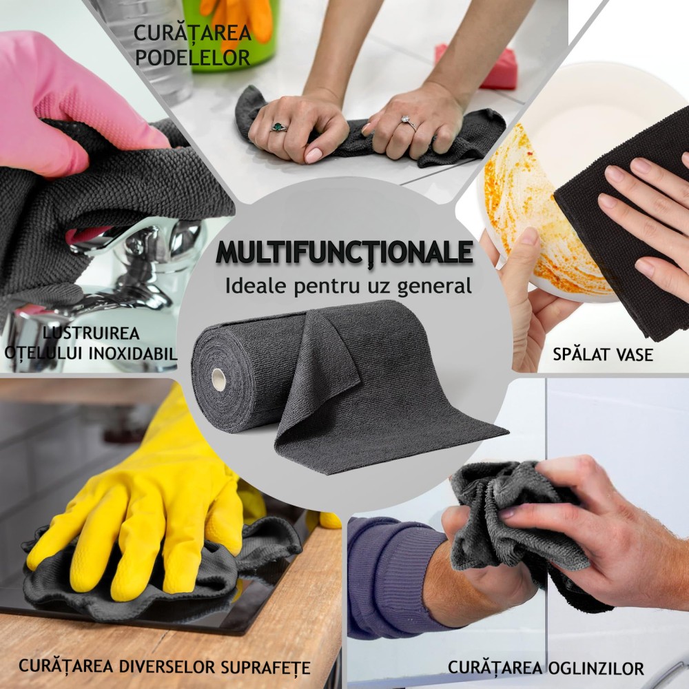 Rola de lavete din microfibra, VENTLEX, 50 lavete, 30x30 cm, 200GSM, Capacitate mare de absorbtie, Reutilizabile, Negru