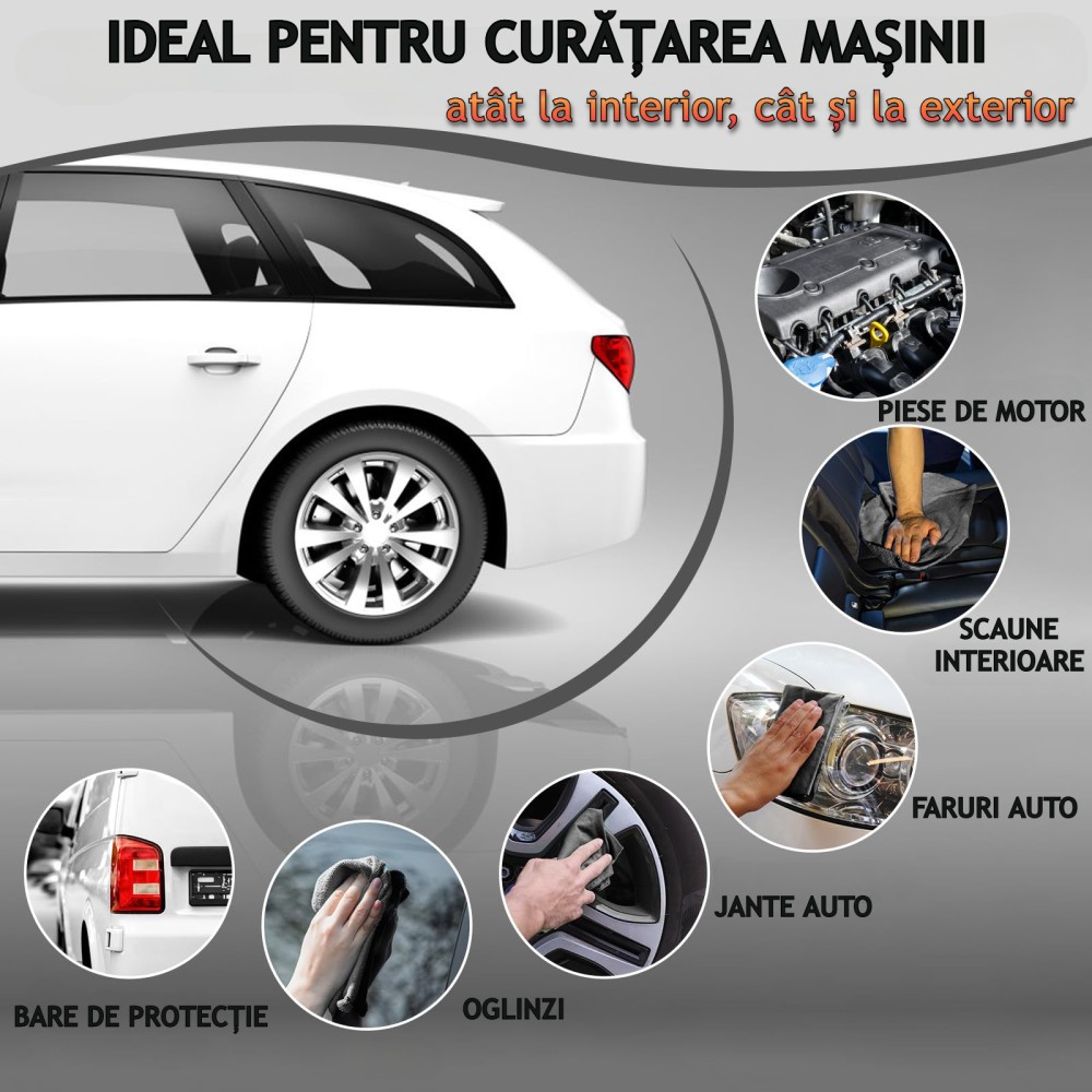 Multifunctionale: Lavetele de microfibra sunt extrem de versatile, fiind ideale atat pentru utilizarea generala in gospodarie, cat si pentru curatarea interiorului si exteriorului masinii. Acestea pot fi folosite pentru a curata pardoselile, mobilierul si echipamentele electronice, precum si pentru a ingriji suprafetele auto. Aceasta versatilitate le transforma intr-un instrument esential pentru orice utilizator, asigurand o curatenie eficienta atat acasa, cat si in masina.