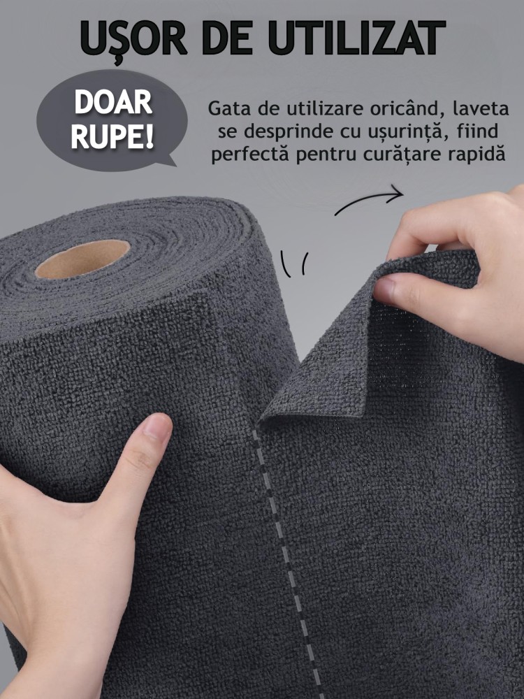 Lavetele pot fi desprinse cu usurinta de pe rola, facandu-le accesibile imediat pentru utilizare, iar apoi pot fi reutilizate de mai multe ori. Aceasta caracteristica le face extrem de convenabile si eficiente pentru curatare, permitandu-va sa economisiti timp si sa aveti mereu la indemana solutia ideala pentru curatare.