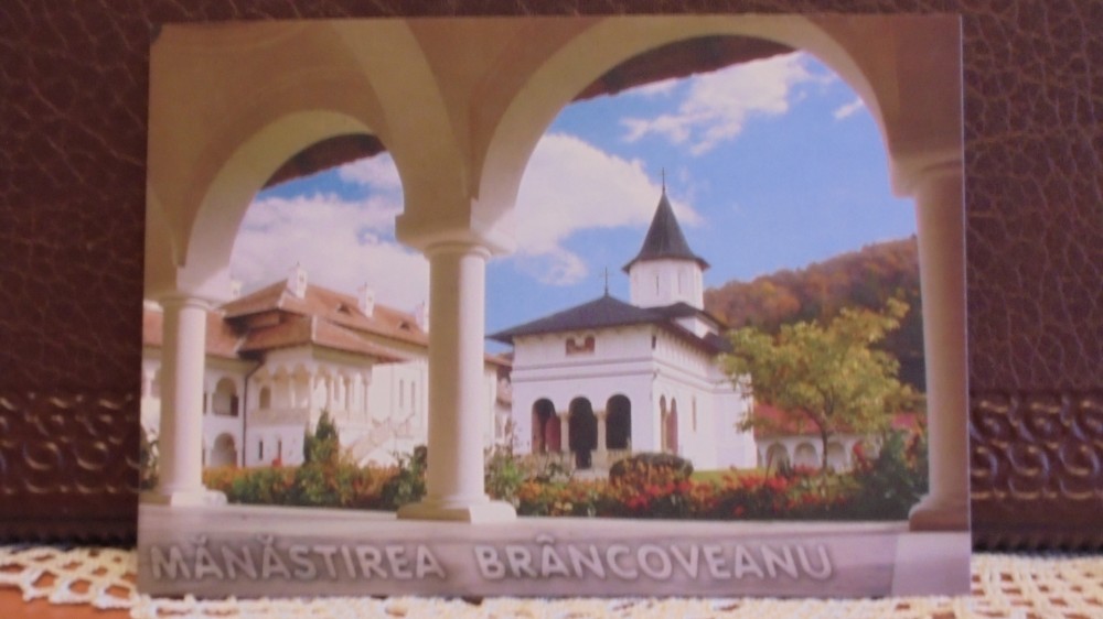 ROM- MANASTIREA BRANCOVEANU, SAMBATA -VEDERE DIN CURTEA MANASTIRII- NECIRCULATA - POZA MANASTIRII CU LACUL DIN APROPIERE PE VERSO.