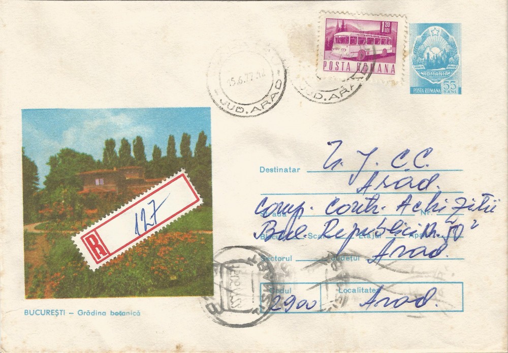 plic recomandat, circulat intern pe ruta Apateu - Arad, 1977