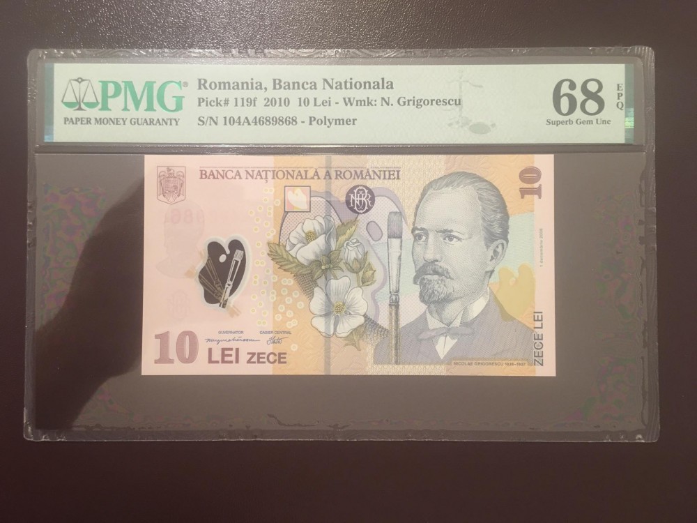Romania 10 lei 2010 pick 119f grad 68 pmg