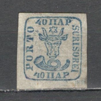 Romania.1858 Cap de bour EMISIUNEA II 40 Par albastru hartie alba ZR.2