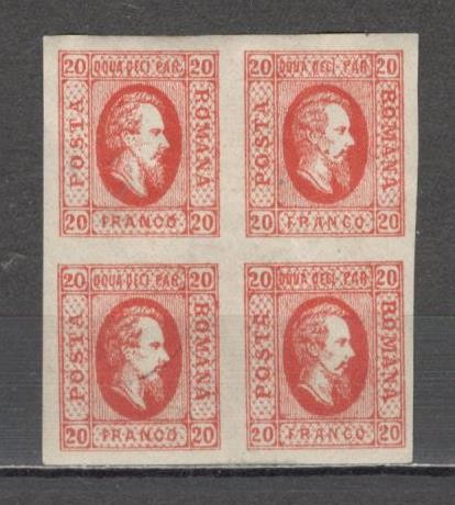 Romania.1865 Principele Cuza in oval 20 Par. rosu tip I+II bloc 4 XR.20