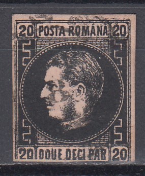 ROMANIA 1866 LP 20 REGELE CAROL I CU FAVORITI 20 PARALE HARTIE GROASA STAMPILAT