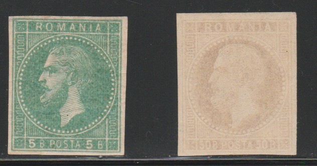 Romania 1872 - 2 Eseuri Carol Paris 5b verde + 50b gri