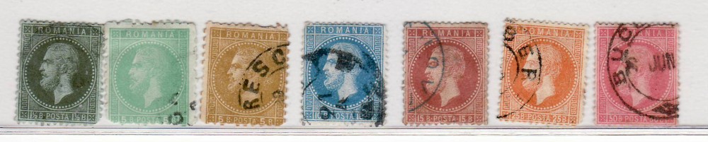 Romania 1872 Carol I 7 valori stampilate