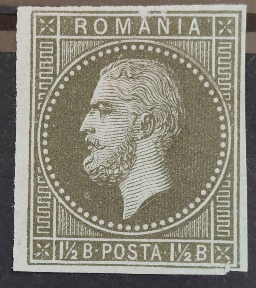 Romania 1872 - Carol l ,, Bucuresti l '',1 cu 1/2 bani oliv pe verzui