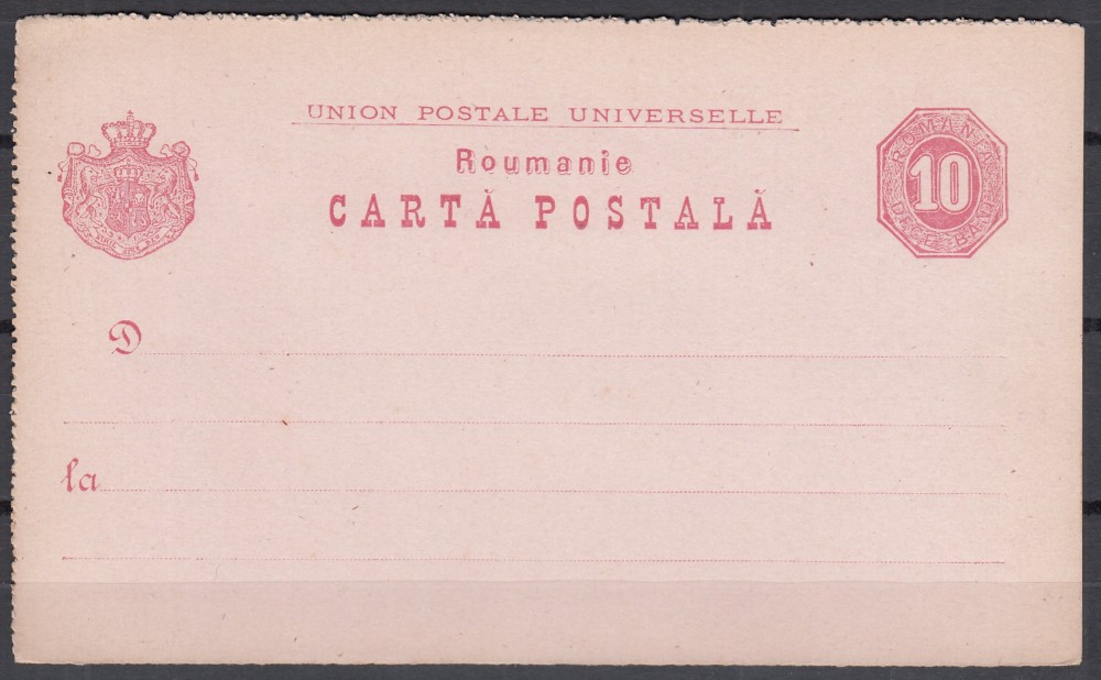 ROMANIA 1879 INTREG POSTAL CARTA POSTALA U.P.U. PENTRU UZ EXTERN 10 BANI