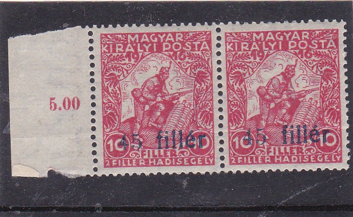 ROMANIA 1919, OCUPATIA SARBEASCA IN TIMISOARA 10 filer/15 filer supratipar in pereche,MNH.MARCI POSTALE MAGHIARE CU SUPRATIPAR,FOLOSITE IN TIMISOARA OCUPATA DE TRUPELE SERBIEI.
