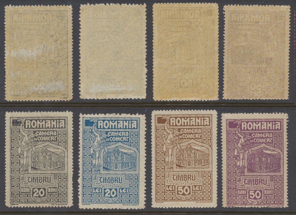 Romania 1921 Camera de Comert lot 4 timbre fiscale nestampilate gumate MNH.