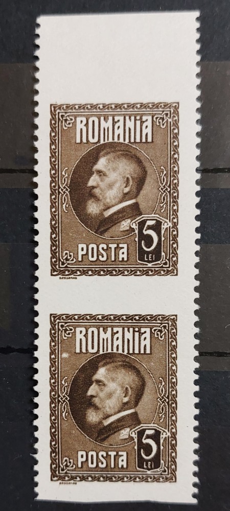 Romania 1926 - Pereche 5 Lei Ferdinand l,imperforat orizontal MNH