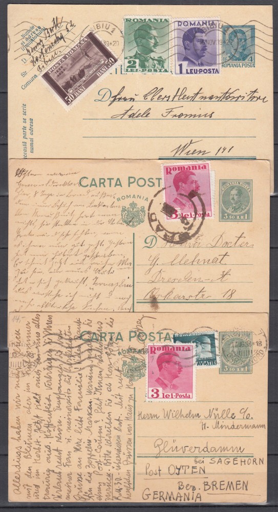 ROMANIA 1935/1939 LOT 3 CARTI POSTALE CIRCULATE