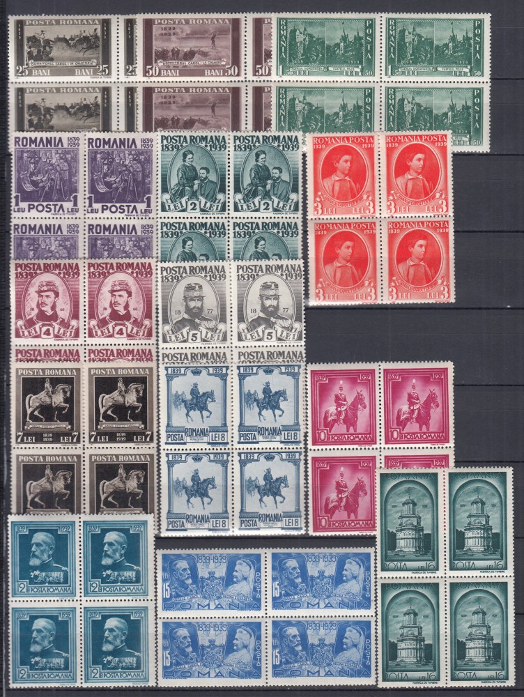 ROMANIA 1938 LP 128 CENTENARUL NASTERII REGELUI CAROL BLOCURI DE 4 TIMBRE MNH