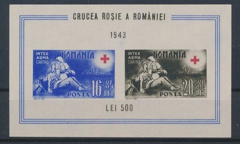 ROMANIA 1943 - CRUCEA ROSIE , COLITA NESTAMPILATE