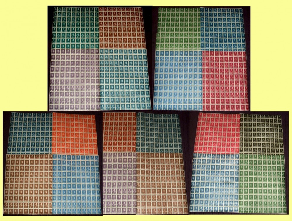 LP 154 - Setul complet de 20 coli x 100 timbre uzuale " Mihai I (filigran MM)", cu guma originala, in stare buna. Colile au fost tiparite fara margini, intre 1944-1945, in prezent destul de rare deoarece majoritatea timbrelor au fost folosite in circuitul postal.