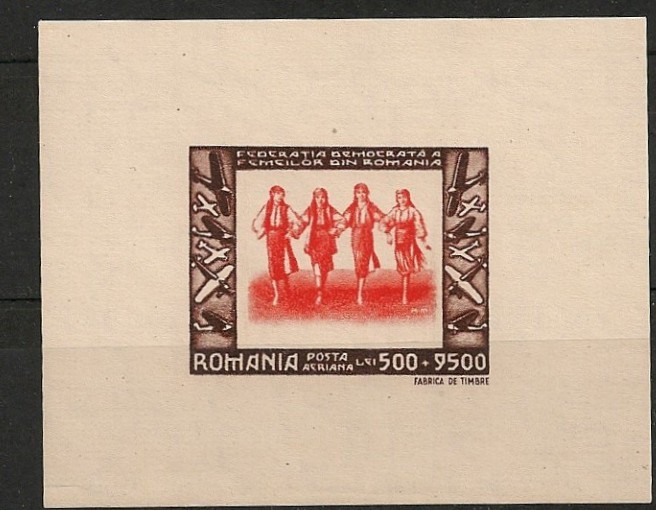 ROMANIA 1946 - FEDERATIA DEMOCRATA A FEMEILOR, COLITA MNH, P11