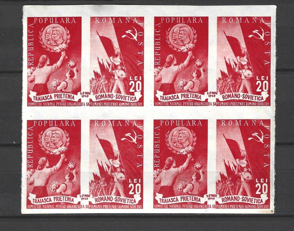 ROMANIA 1949 - PRIETENIA ROMANO-SOVIETICA, BLOC NEDANTELAT, MNH - LP 257a