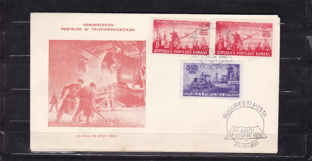 ROMANIA 1950 LP 263 PLANUL DE STAT FDC STAMPILA PRIMA ZI A EMISIUNII