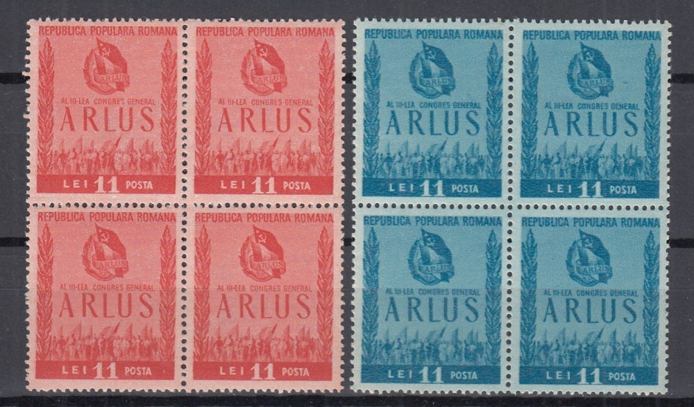 ROMANIA 1950 LP 274 AL III-LEA CONGRES GENERAL A.R.L.U.S. SERIA IN BLOC DE 4 TIMBRE STARE MNH