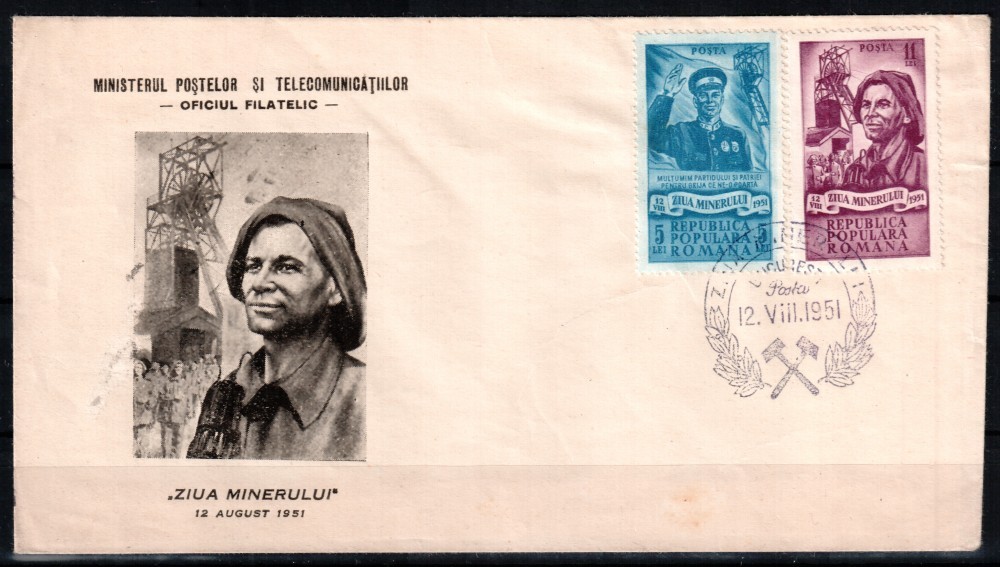 Romania 1951, LP 285, Ziua Minerului, FDC. Plic PRIMA ZI. RAR!