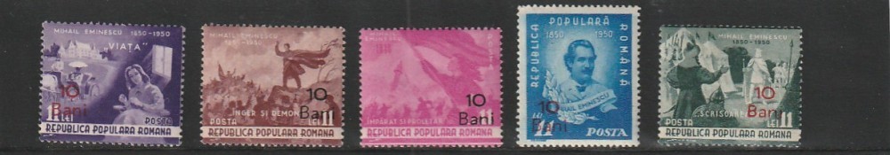 ROMANIA 1952 LP 301 CENTENARUL MIHAI EMINESCU SUPRATIPAR SERIE MNH NESTAMPILATA