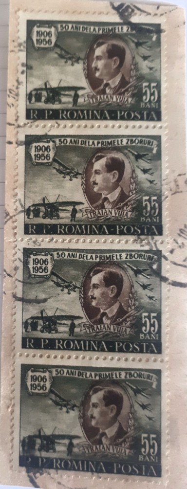 Romania 1956 Lp 411 Traian Vuia strip de 4 timbre stampilat