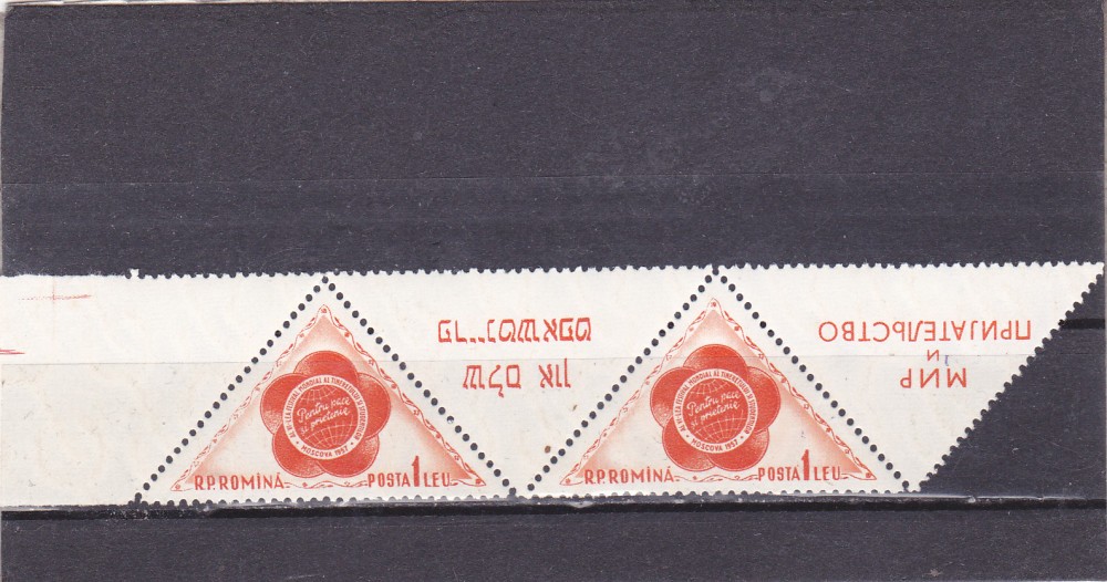 ROMANIA 1957-FESTIVALUL TINERETULUI SI STUDENTILOR DE LA MOSCOVA, MNH - LP 434a,2 EXEMPLARE CU VINIETE DIFERITE IN PERECHE CU MARGINE DE COALA!