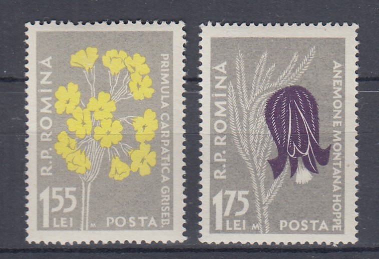 ROMANIA 1957 LP 432 b FLORA CARPATINA VALORILE 1,55 LEI SI 1,75 LEI EROARE M MNH