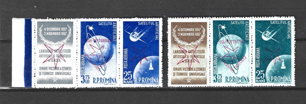 ROMANIA 1958 - SATELITII ARTIFICIALI (SUPRAT. RASTURNAT) TRIPTIC, MNH - LP 459c (1)