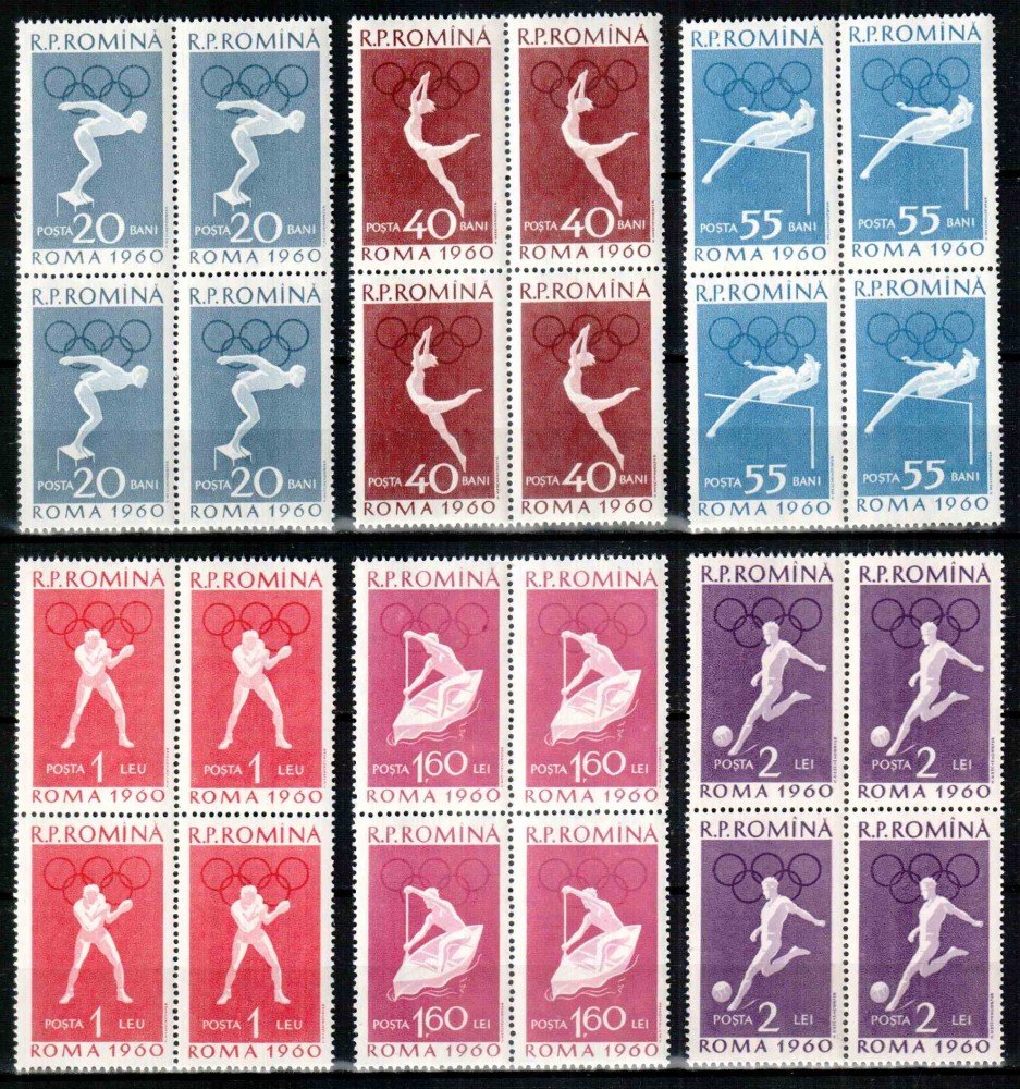 Romania 1960, LP 499, Jocurile Olimpice Roma II, seria in blocuri de 4, MNH!