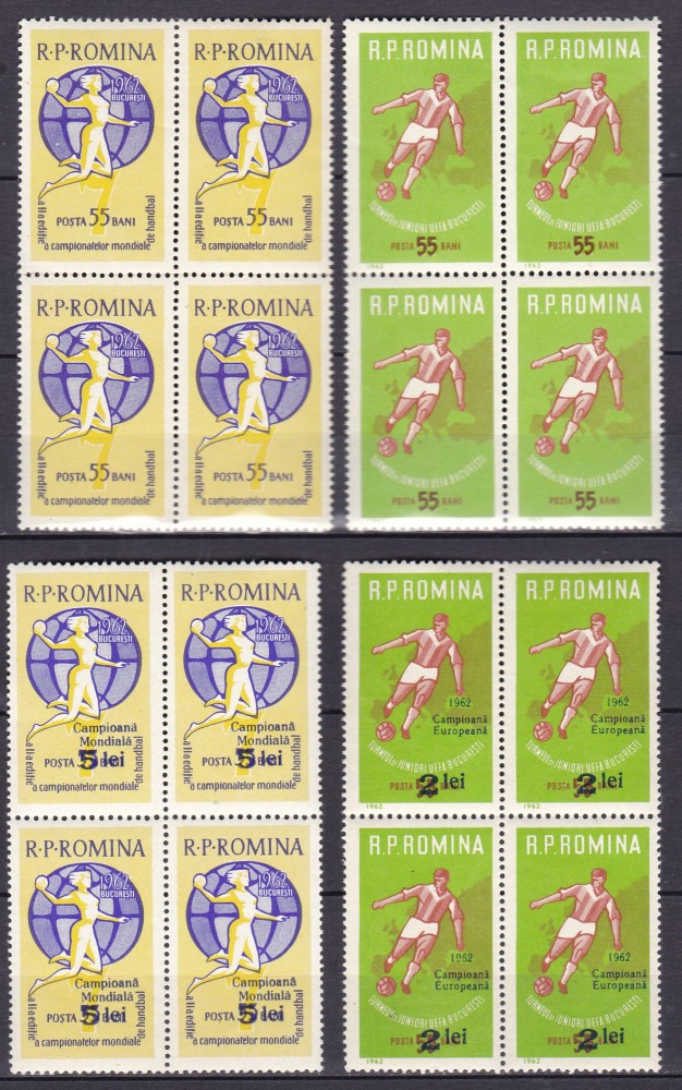 ROMANIA 1962 LP 535 LP 537 LP 545 LP 546 TURNEUL U.E.F.A./R.P.R.BLOCURI DE 4 MNH