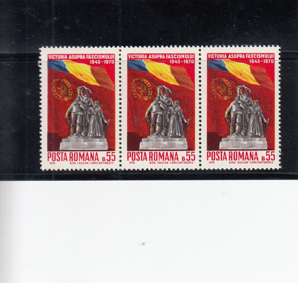 ROMANIA 1970 LP 727 VICTORIA ASUPRA FASCISMULUI STRAIF DE 3 MNH