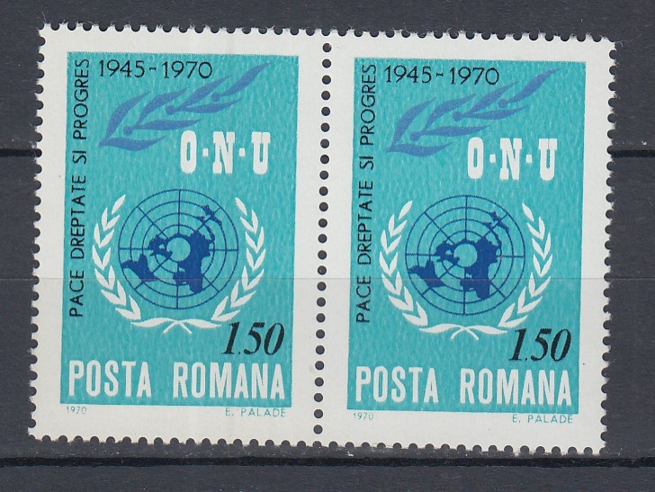 ROMANIA 1970 LP 746 - 25 ANI DE LA INFIINTAREA O.N.U. PERECHE MNH