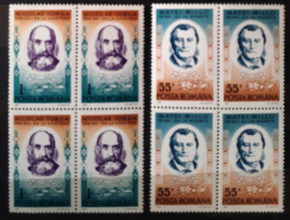 Romania 1971 Lp 784 bloc de 4 timbre Aniversarii Nnestampilat mnh