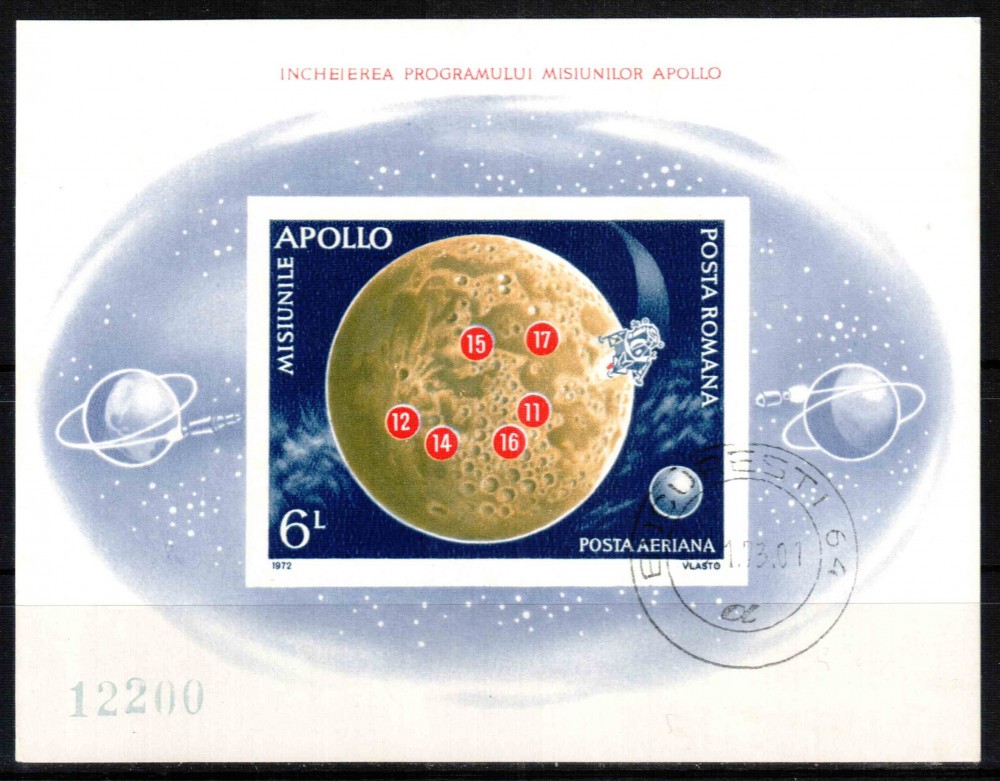 Romania 1972, LP 816, Incheierea progr. Apollo, colita stampilata, cu guma CTO!