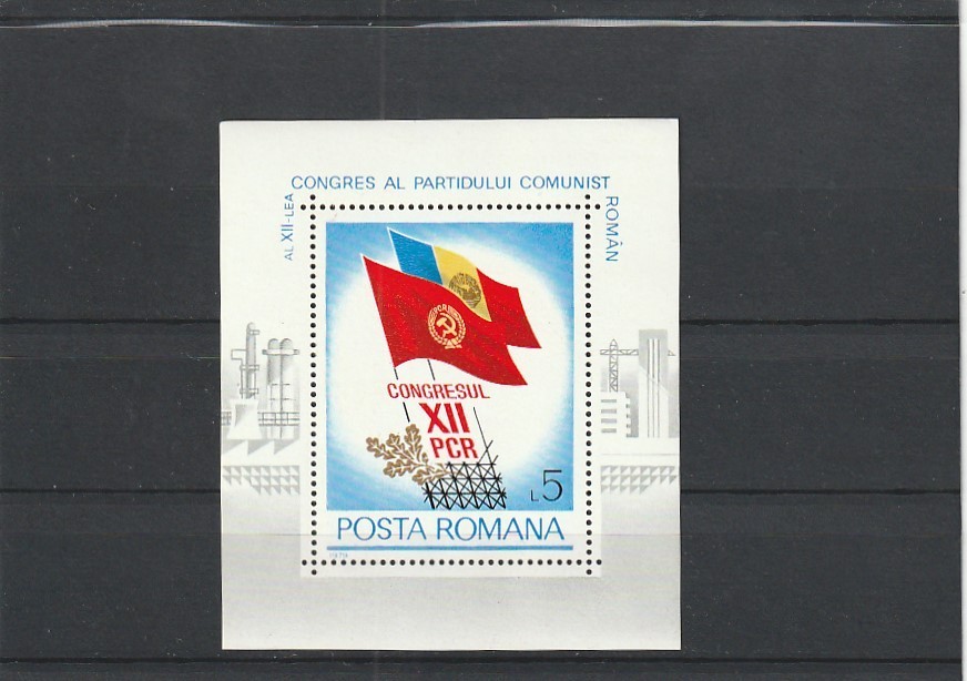ROMANIA 1979 LP 990 AL XII-LEA CONGRES AL P.C.R. COLITA DANTELATA MNH NESTAMPILATA
