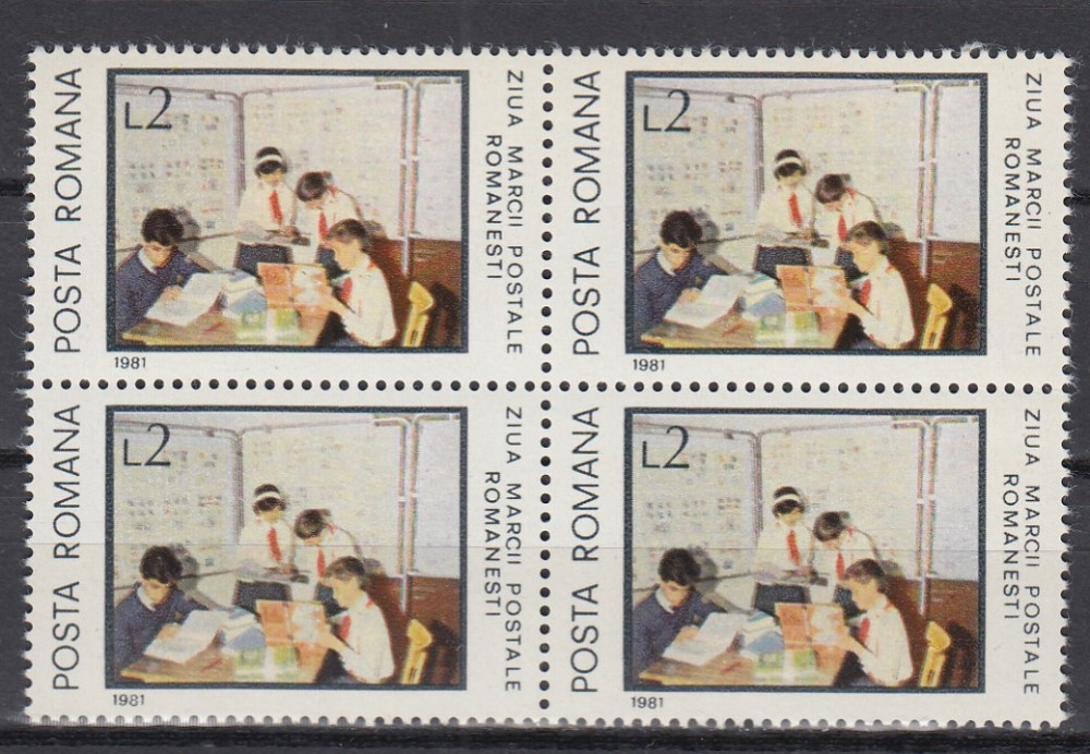 ROMANIA 1981 LP 1044 ZIUA MARCII POSTALE ROMANESTI BLOC DE 4 TIMBRE MNH