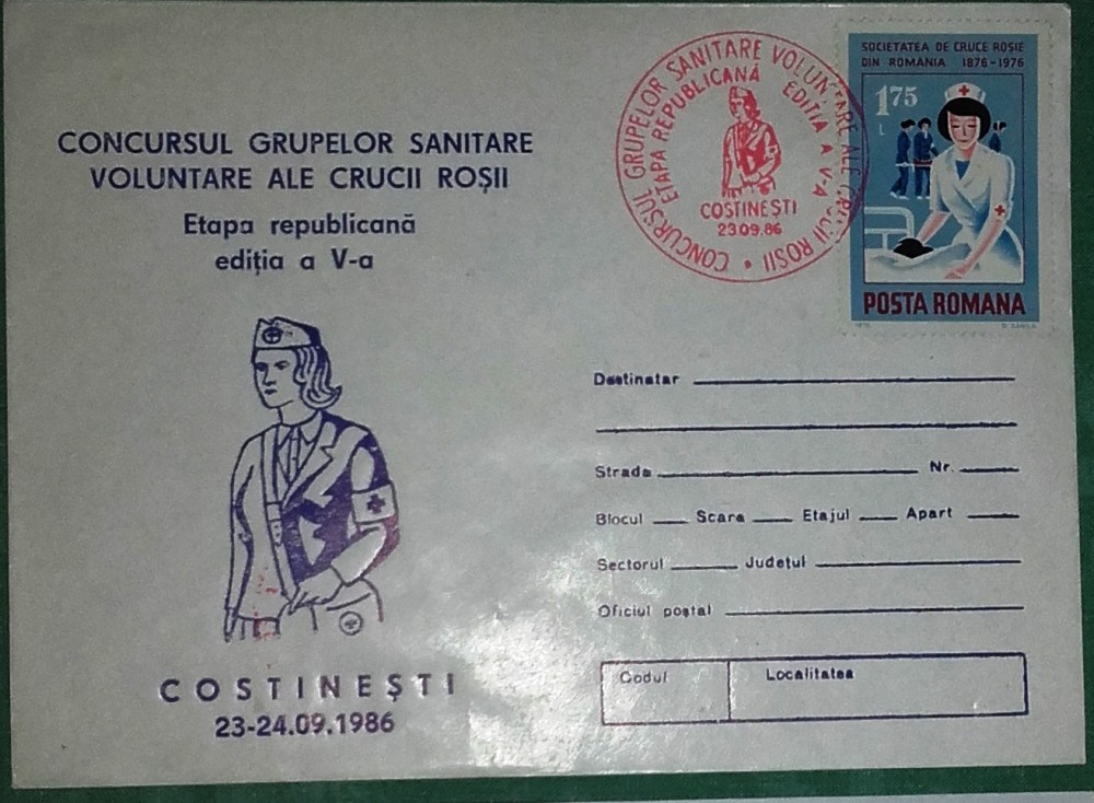 ROMANIA 1986 - CONCURS CRUCEA ROSIE COSTINESTI. FDC (PB5)