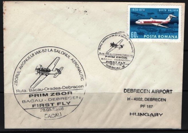 ROMANIA 1993 - AVIATIE. PRIM ZBOR AVION IAK-52. PLIC OCAZIONAL, Z73