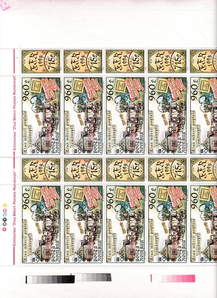 ROMANIA 1995 LP 1384 a ZIUA MARCII POSTALE ROMANESTI COALA 10 TIMBRE+10 VINIETE STARE MNH
