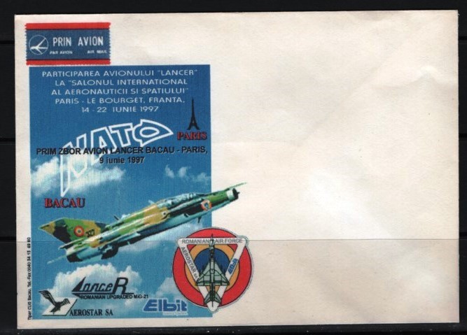 ROMANIA 1997 - AVIATIE. PRIM ZBOR AVION LANCER. PLIC NECIRCULAT, Z81