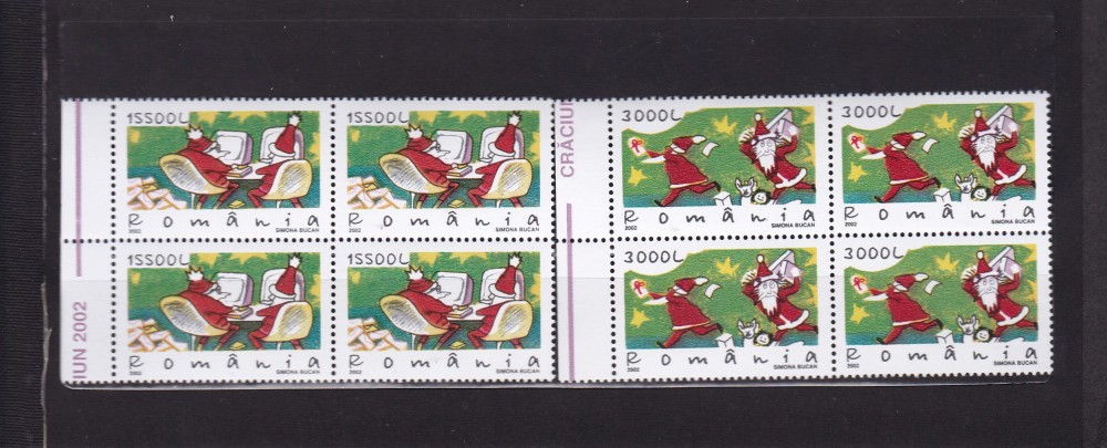 ROMANIA 2002 LP 1597 CRACIUN BLOCURI DE 4 TIMBRE MNH
