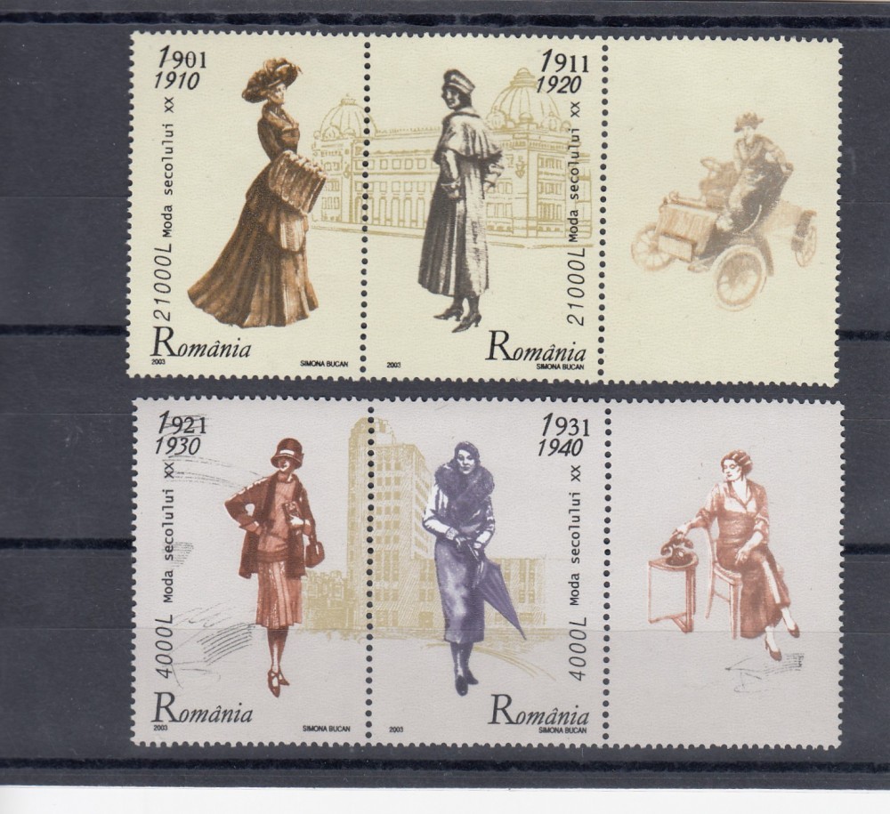 ROMANIA 2003 LP 1623 a MODA SECOLULUI XX SERIA CU VINIETE DREAPTA MNH