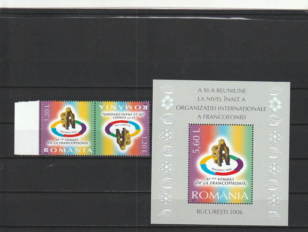 ROMANIA 2006 LP 1740 LP 1741 FRANCOFONIA SERIE TETE-BECHE + COLITA MNH NESTAMP