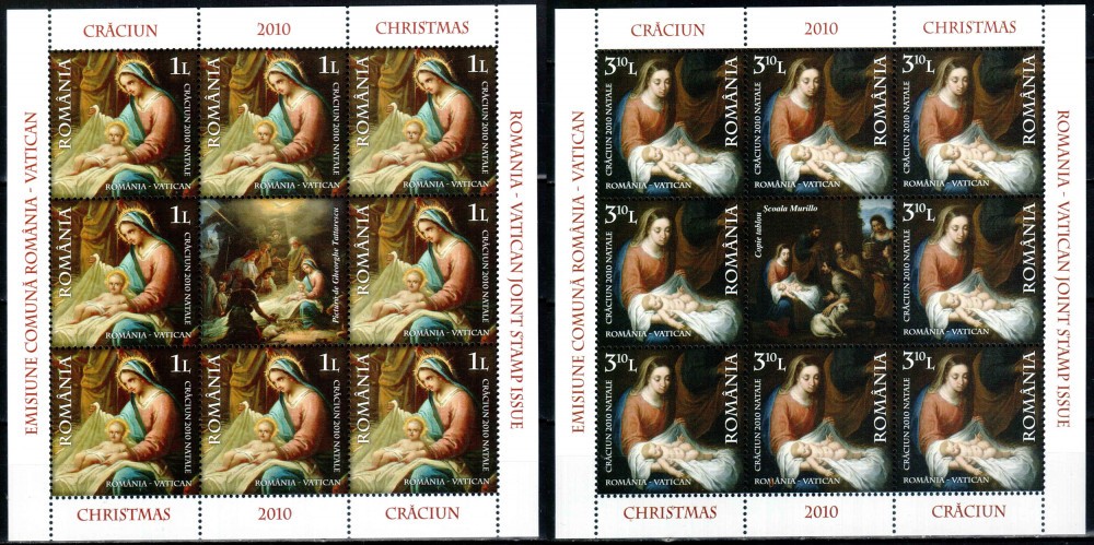 Romania 2010, LP 1885 e, Emisiune comuna Romania - Vatican: Craciun, minicoli de 8+1, MNH!