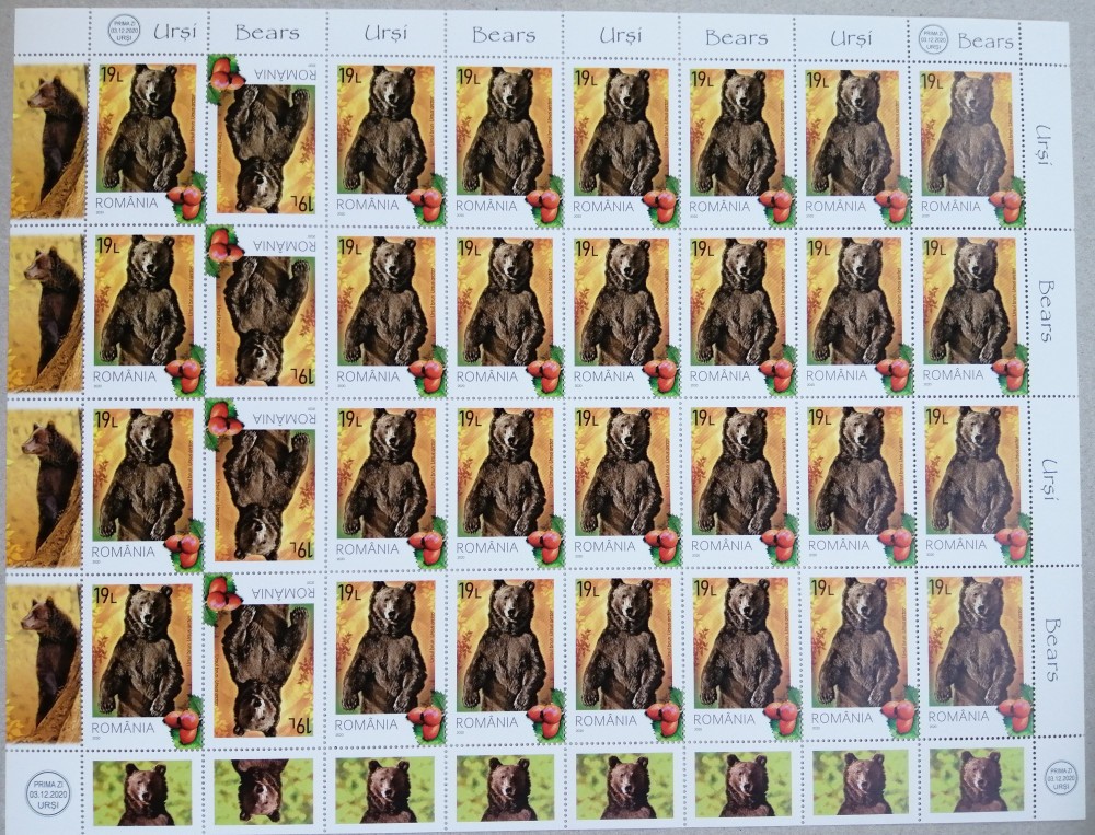 ROMANIA 2020 URSI - Set 4 coli mari de 32 timbre cu tabsuri si Tete-Beche MNH**